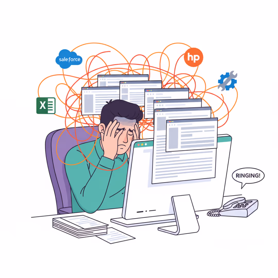 Your operations manager spends 15 hours per week copying data between systems. You rebuild quotes from scratch. You chase signatures on PDF proposals. Customers call asking "where's my installer?" because they have no visibility.