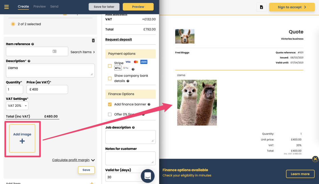 All updatesAdd images to items to display on your quotes and invoicesNew8 March 2021·Payaca Team← OlderSee sort & filter information at a glance when viewing your jobs using the Payaca mobile appNewer →Send quotes with 0% finance and standard payment options
