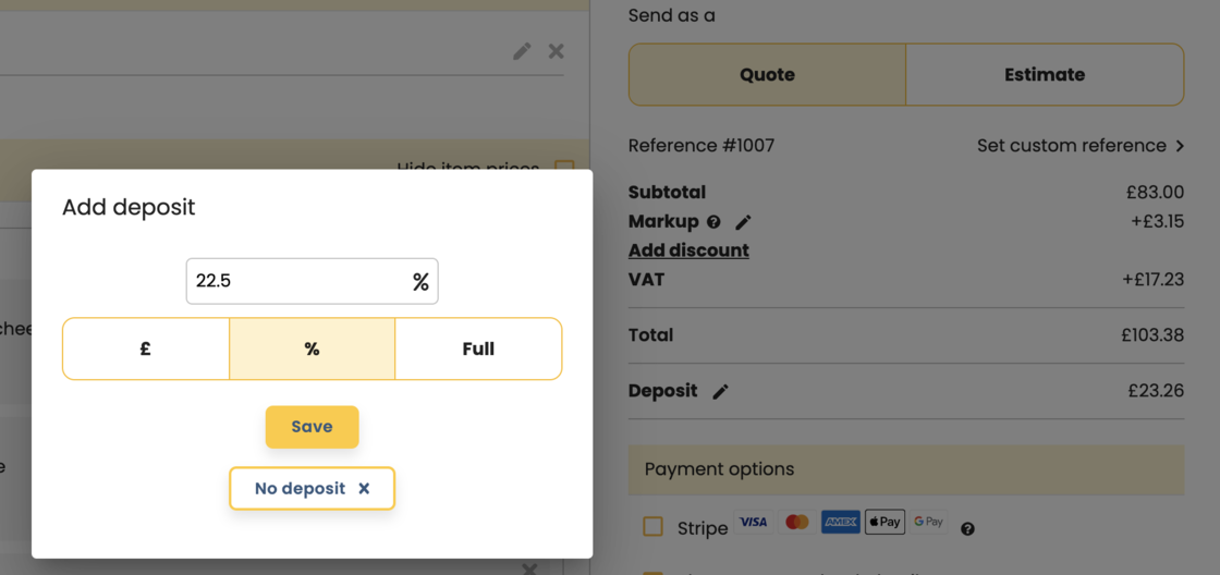 Add percentages with 2 decimal places for markups, discounts and deposits