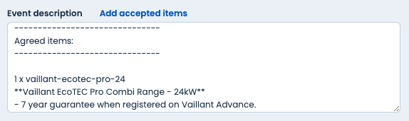 Martha HearnWhen you're editing an Event linked to a Project, you'll have the option to click to add accepted items from that Project into the Event description.