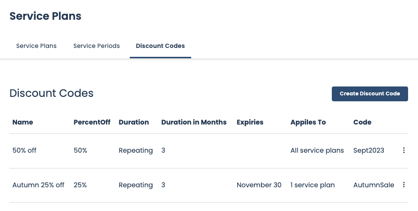Owen EvansYou can now create discounts for you service plans! A discount specifies the percentage off the original price for x number of months, every month or just once.