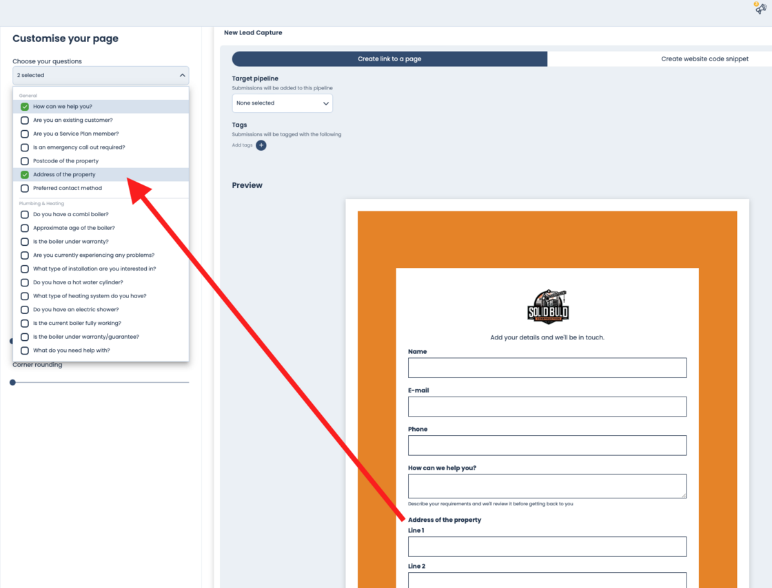 Martha HearnUsing our lead capture forms on your website or elsewhere? Now you can ask for an address that will get automatically added as the site address to the new project created.