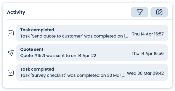All updatesCompleted tasks now show up in your deal activity. Yay! 🦕New14 April 2022·Martha Hearn← OlderiOS mobile 2.0! 📱Newer →Android mobile 2.0! 🤖