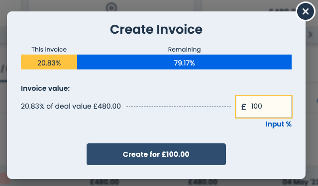 Martha HearnHave you ever wanted to raise an invoice for an exact value rather than a percentage? Our newest update makes it straightforward to toggle between entering a value or a percentage at the 'Create Invoice' stage.