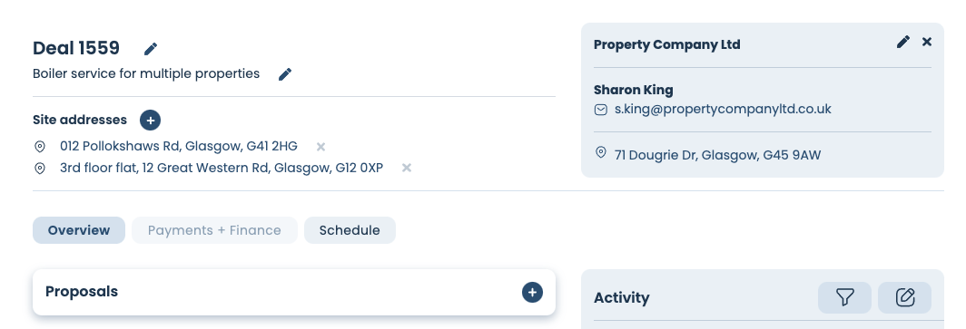 Assign site addresses to your deals - when adding a site address to a deal, you can choose from any existing addresses against your customer or enter a new address.