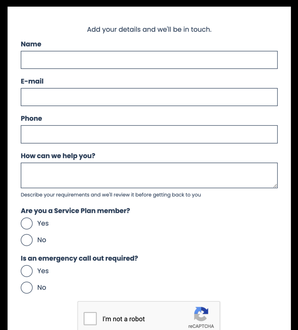 We've added a couple of new questions to the Pages feature, to help you identify customers with service plans, and emergency call out needs.