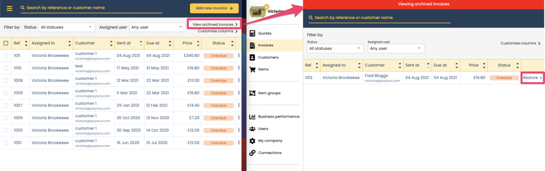 Did you accidentally delete a quote and want to retrieve it? You can now access the archive to restore all your deleted quotes and invoices.