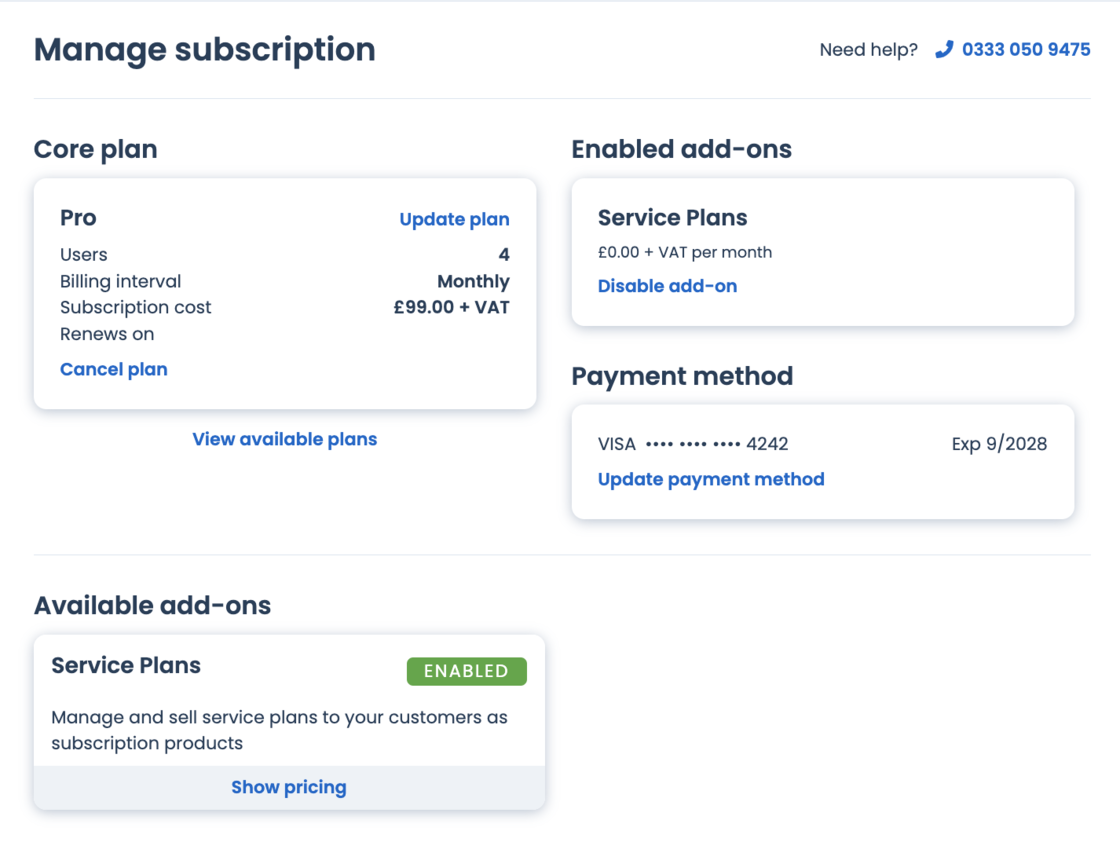 This new feature is available as an "add-on" to your core Payaca subscription. Head over to the "Manage subscription" page (which has undergone a refresh) to enable it.