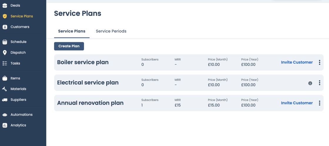 Now you can configure and sell ongoing Service Plans as subscription products, so your customers can feel confident that you've got them covered. Service Plans integrate with Payaca's Schedule and Tasks features, so you can easily manage your recurring commitments.