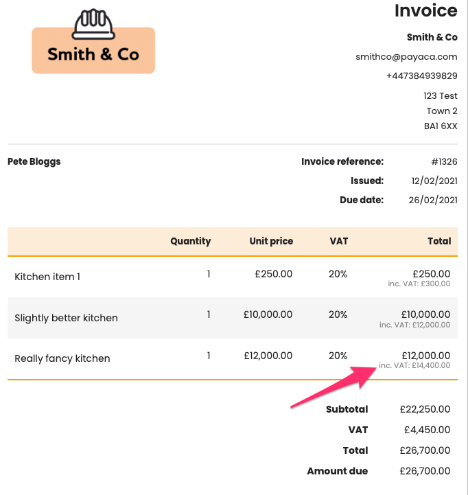 Total inc. VAT is now shown against each line item on a sent quote or invoice