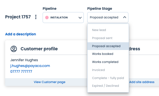 …We've added a Pipeline Stage control to the Project page!