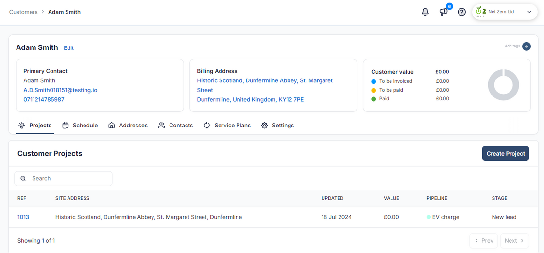 You can also see all the Projects, Scheduled Events and Service Plan Subscriptions each customer is associated with within the other tabs.