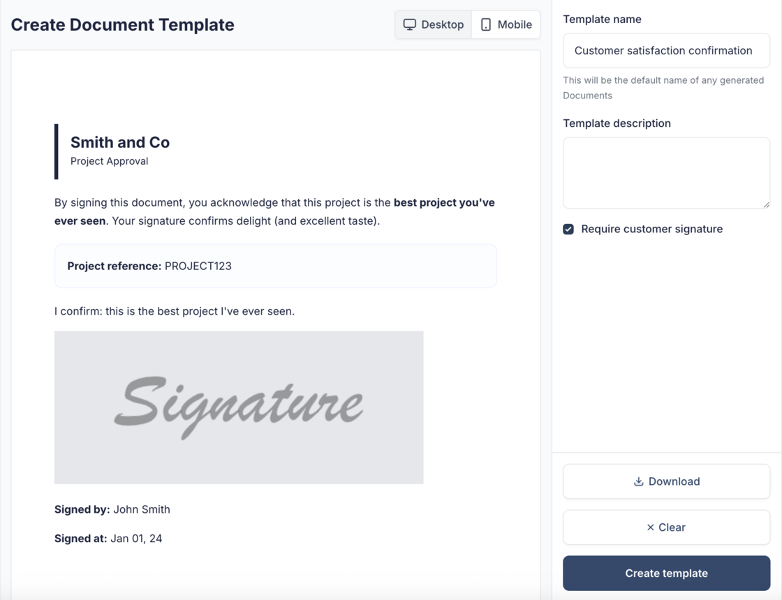 Collect customer signatures on your custom documents π
