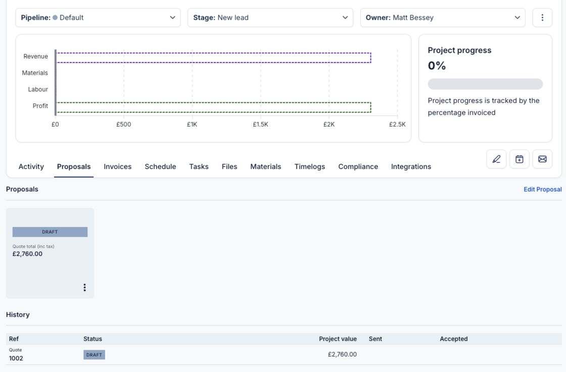 Matt BesseyWe've updated the Project revenue forecast to include revenue on draft Proposals, so you can understand the profitability of a Project before a Proposal has been sent.