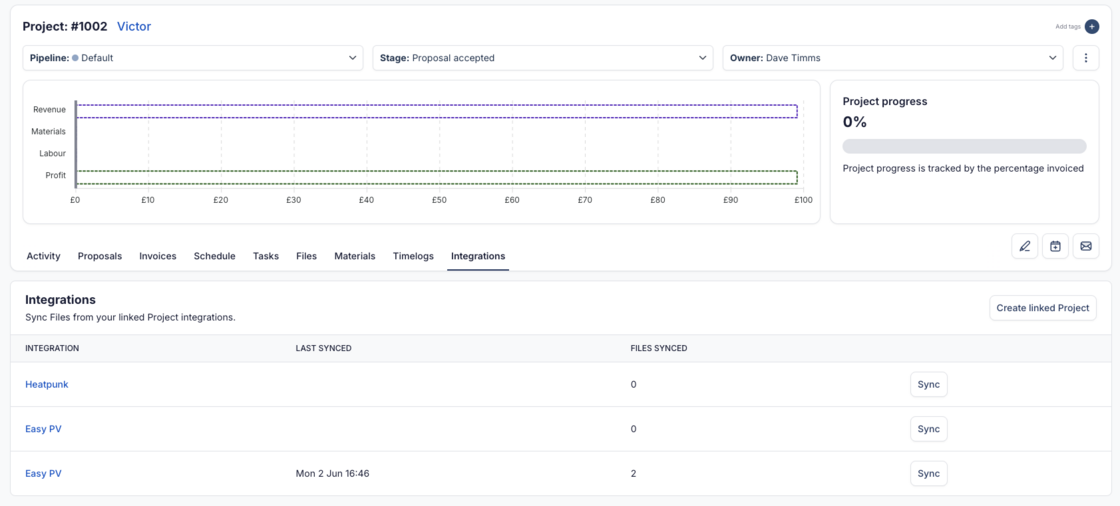 - Create a linked Project directly from the Integrations tab on your Payaca Project