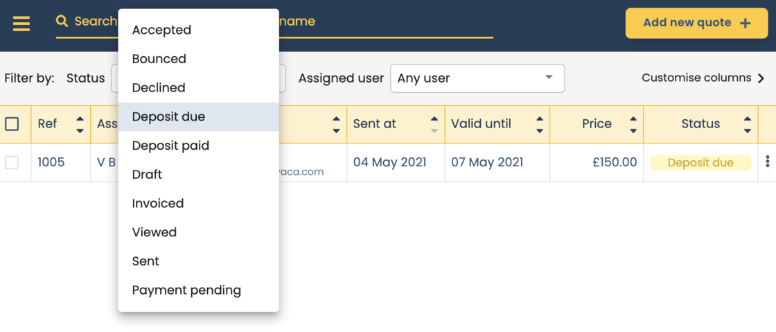 This will show for any jobs that have been accepted with a deposit which has not been confirmed fully paid. Thanks to David at Goodwin Graphics for requesting this!