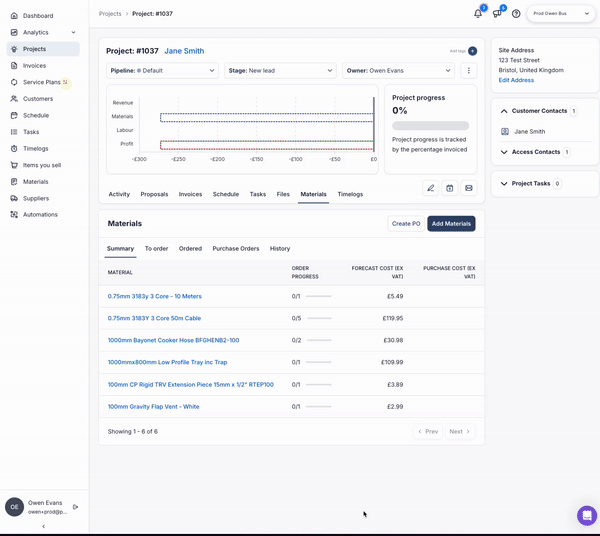 Previously, when you wanted to view a Material in detail from the Project overview, you were taken to a different page.
