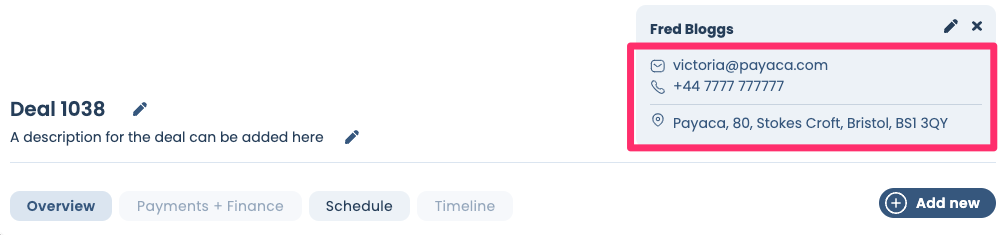 All updatesQuickly contact customers on a dealNew9 December 2021·Payaca TeamClick on customer details to call, email or open their address in a map! ← OlderCalendar - Link an event with a dealNewer →Add bold text, links, emojis 🤩 and more to your proposals and invoices!