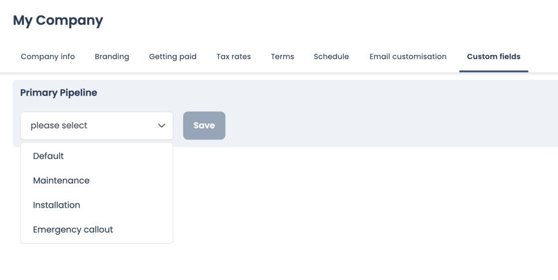 Navigate to the My Company page to set a primary pipeline for your account!