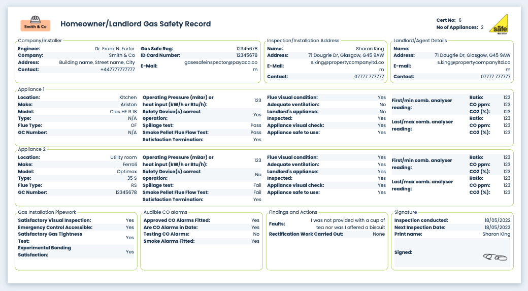 Gas safety records are now super condensed for easy printing, and can be customised to your brand colour.