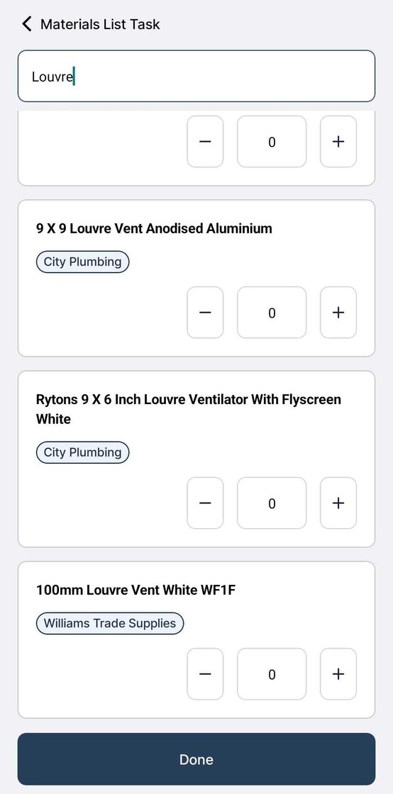 Now see which Supplier a Material is available from when creating Material Lists on the field service app!