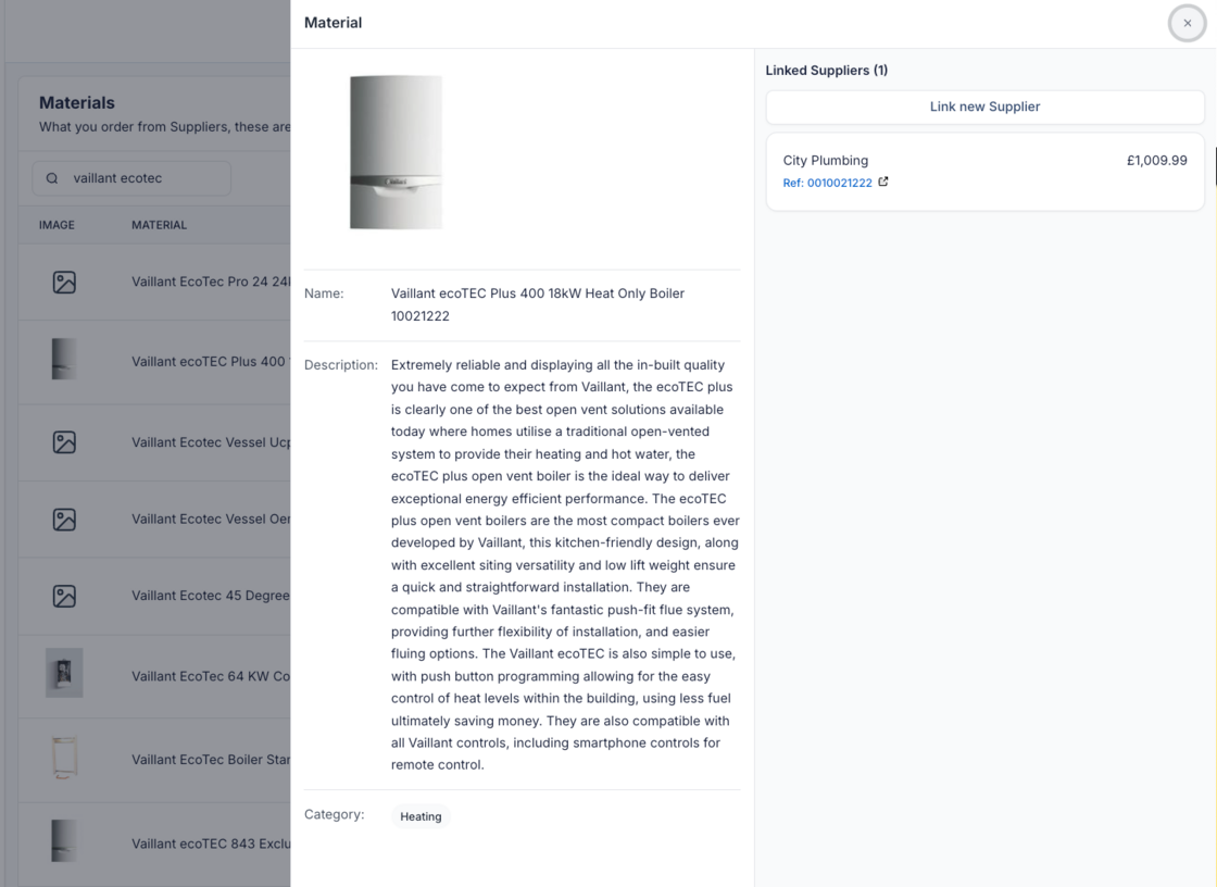 Customers with the City Plumbing catalogue Connection configured will now see images for City Plumbing supplied Materials, where available.