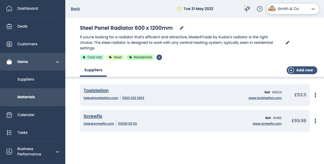 Martha HearnFollowing on from our Suppliers page update last week, we've added a Materials page. This is also available under Items in the left hand navigation bar.
